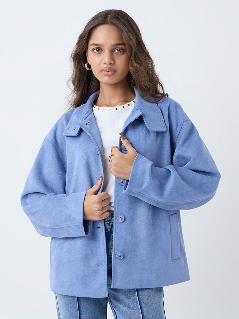 Add a layer of effortless style to your winter wardrobe with this dusty blue jacket from LOV. Designed with a high-neck, button-up front and full sleeves, it offers a structured yet relaxed silhouette. Finished with kangaroo pockets and woven from high-quality fabric, it ensures warmth and comfort while keeping the look sharp.