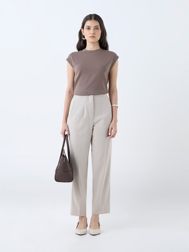 Wardrobe introduces these beige trousers as a refined essential for modern workwear. Tailored from a lightweight fabric, they are detailed with a hook closure, zip fly and functional side pockets, offering understated elegance with ease.