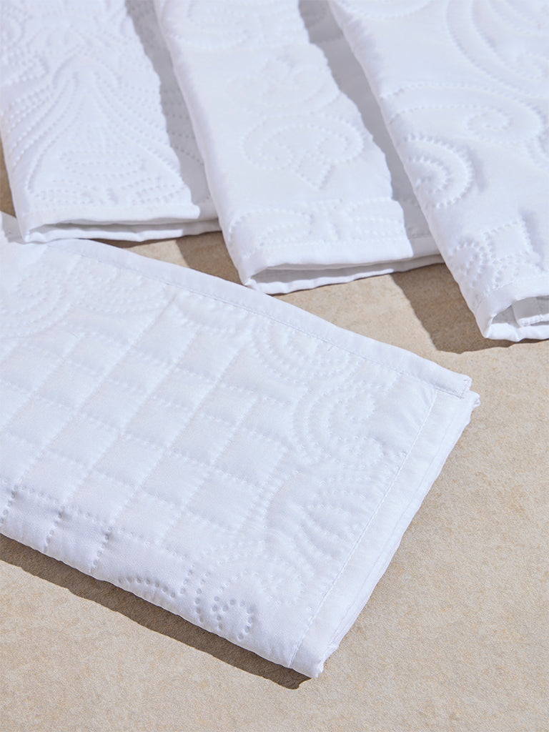 Enhance your table setting with this white heat-seal runner from Westside Home. Designed with a soft, cushiony texture, it offers heat protection while adding a touch of elegance. The delicate floral design brings a refined charm, making it a perfect addition for both everyday dining and special occasions.