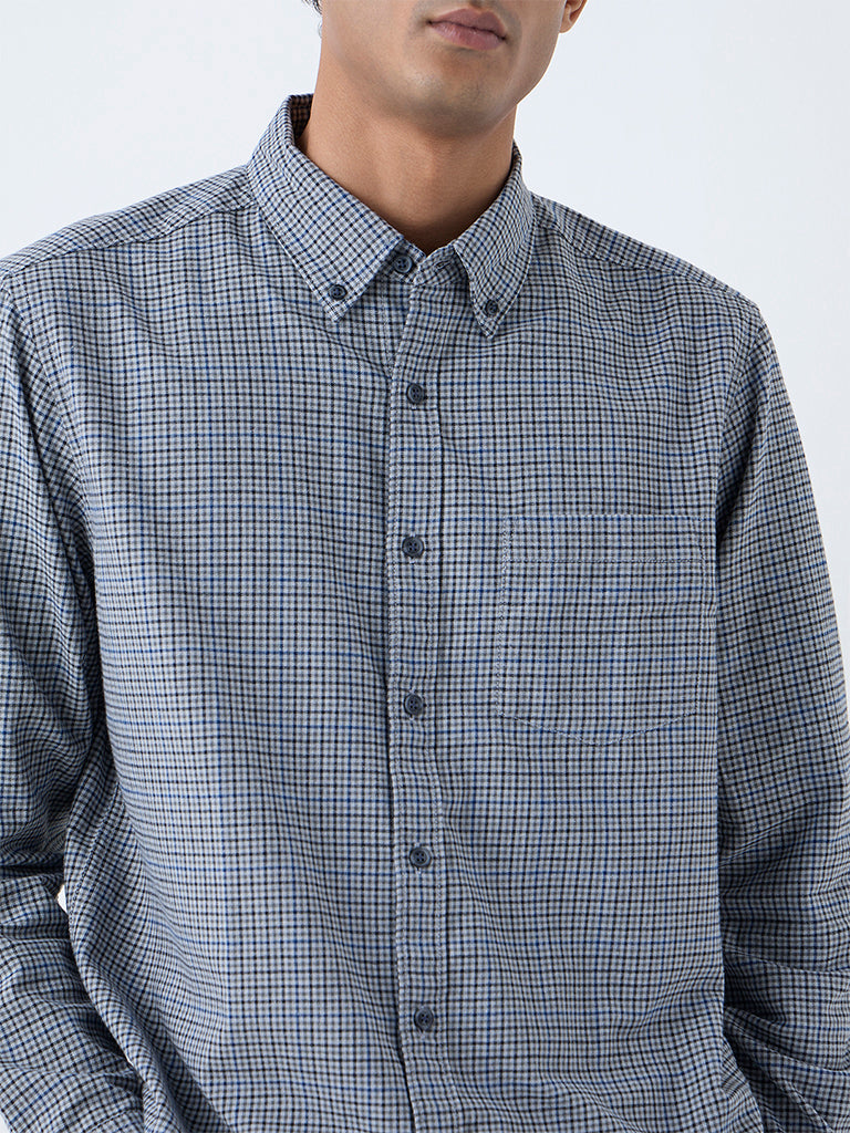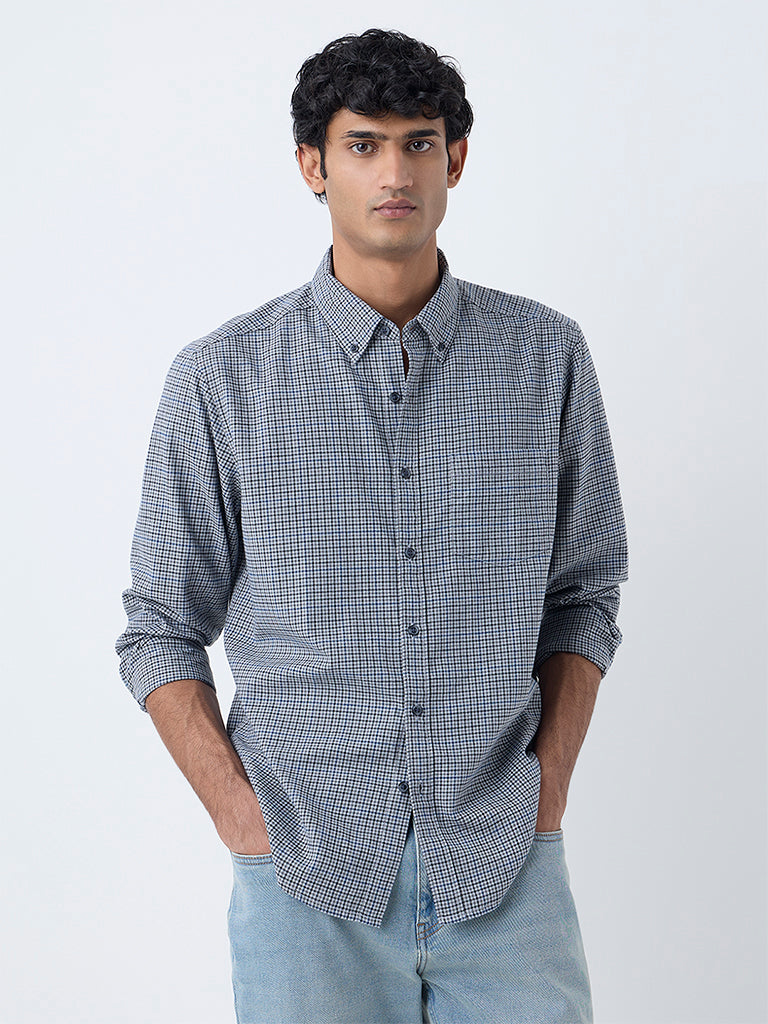 WES Casuals Grey Checks Pattern Relaxed-Fit Cotton Shirt