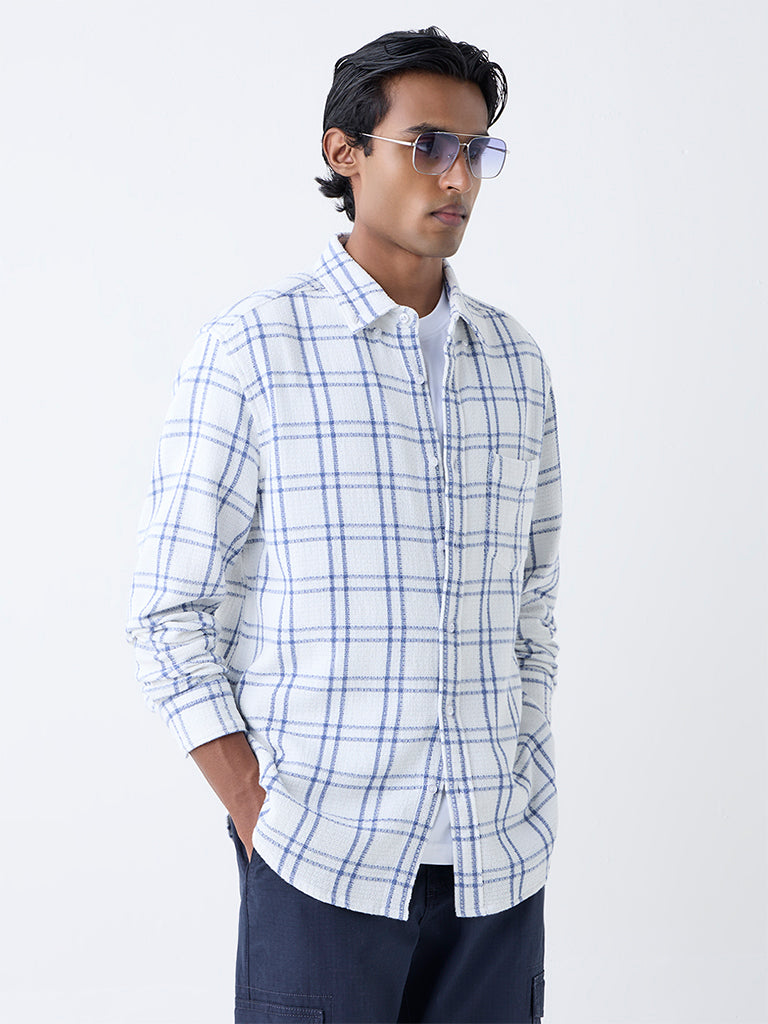 WES Casuals White Checks Detailed Relaxed-Fit Cotton Shirt