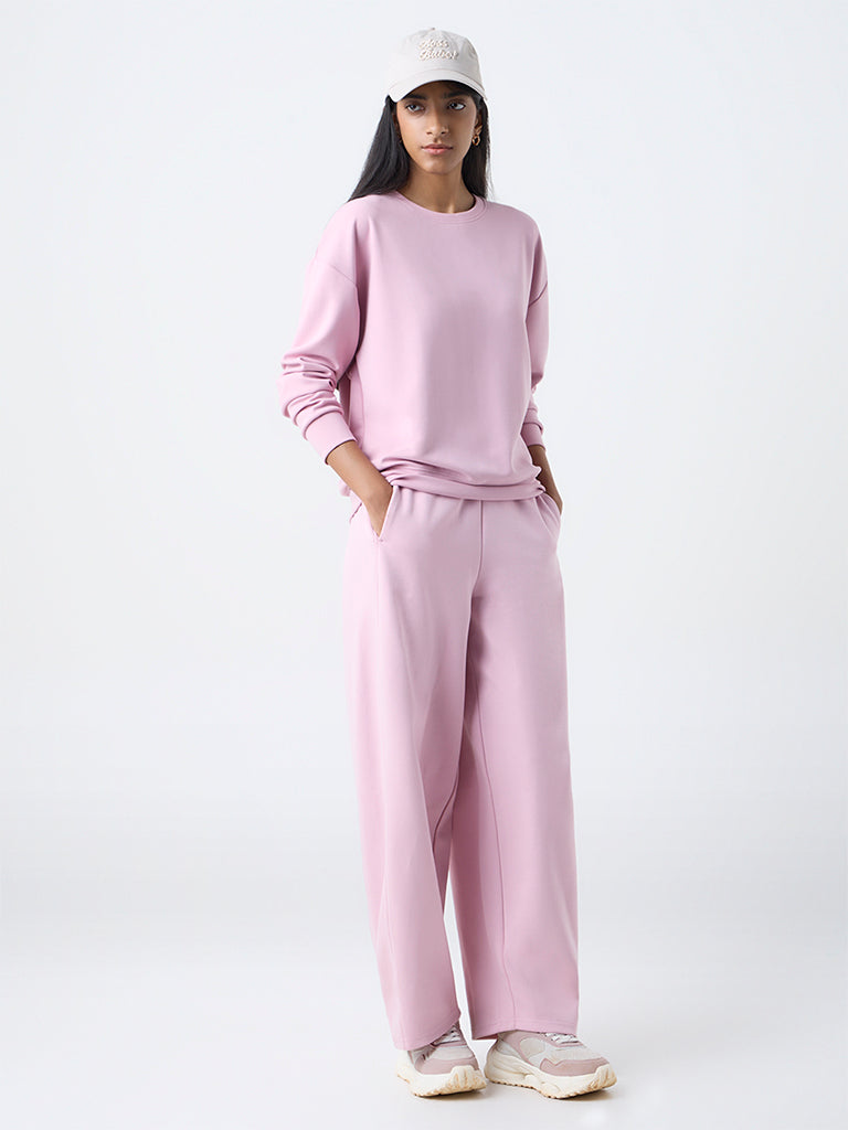 Refresh your active wardrobe with Studiofit is pink high-rise track pants, engineered for comfort with an elasticated waistband and adjustable drawstrings that adapt to your stride. Crafted from soft, premium fabric, they offer a relaxed yet flattering shape enhanced by functional side pockets.
