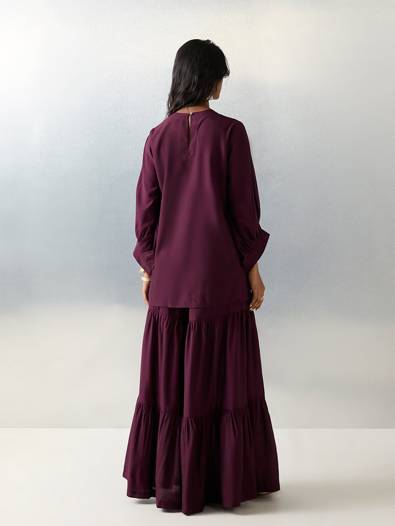 This purple tunic from Utsa is built from a premium-blend blend fabric, offering a soft feel against the skin. Showcasing striking floral embroidery, it is designed with a round neck and peasant sleeves, making this a refined choice for adding color to your ethnic collection.