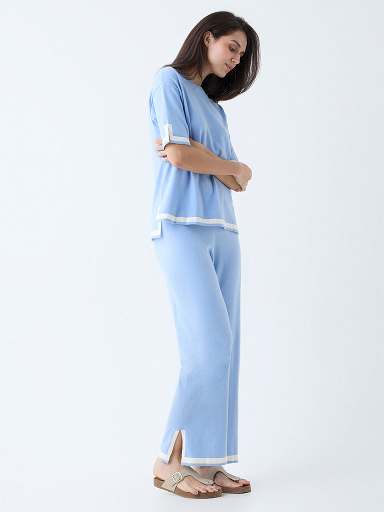 These light blue lounge pants from Wunderlove are woven from a sumptuous fabric for elevated comfort. Designed with a smooth elastic waistband, they’re finished with a slit at the hem and contrast detailing for a flattering look.