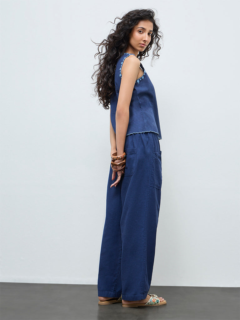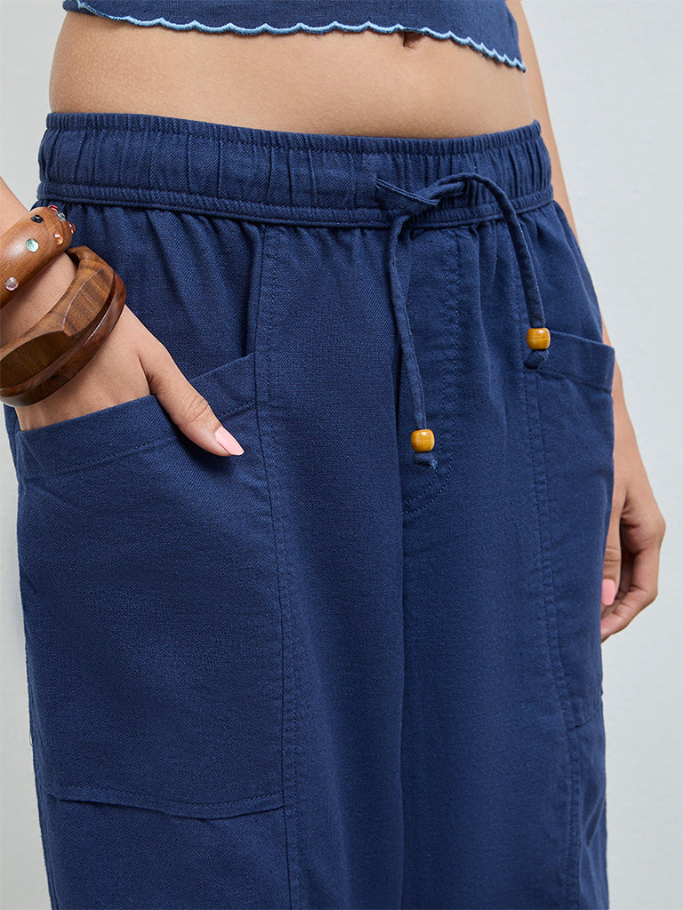 Boost your off-duty rotation with these indigo pants from Bombay Paisley. Designed with an elasticated waistline and adjustable drawstrings, they offer a comfortable, customisable fit. Multiple pockets add everyday functionality, while the cotton-rich fabric keeps them breathable and easy for relaxed weekends and travel days.