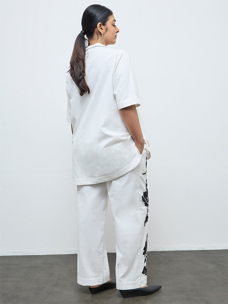 These off-white ethnic pants from Diza are designed to complement both comfort and craft. The elasticated waistband offers a flexible, easy fit, while floral embroidery adds an understated accent. Finished with side pockets for practical wear, they move effortlessly between festive gatherings, casual days and everyday ethnic looks.
