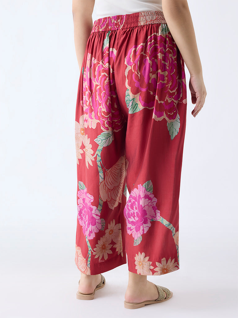 Bring a fresh twist to your festive look with these red ethnic pants from Diza. The oversized floral prints finessed with a soft, stretchy waistband offer both style and comfort, making them ideal for long hours of wear.