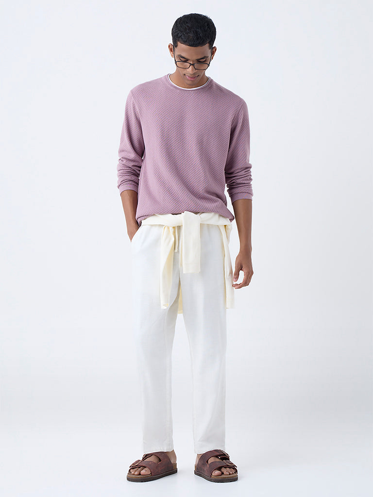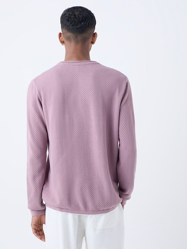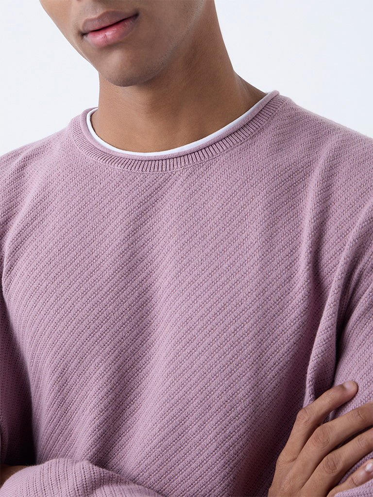 This dusty pink sweater from ETA is styled with a round neck and full sleeves in a relaxed frame that ensures all-day ease. Constructed from pure cotton and finished with a textured surface, it brings dimension to the design. Laid-back yet refined, it layers effortlessly over casual separates for everyday wear.