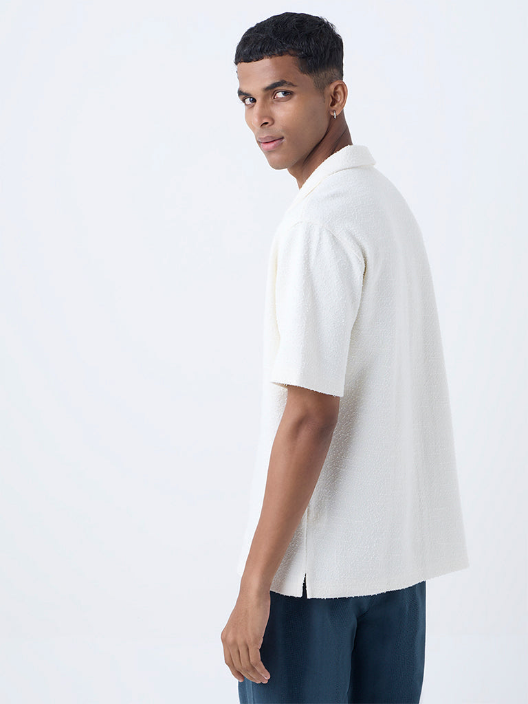 ETA introduces this off-white shirt, woven from pure cotton fabric for uncompromised comfort. Featuring a textured layer on a relaxed-fit frame, it features a notched collar, short sleeves and a button-up front. A refined yet easygoing addition to your everyday wardrobe.