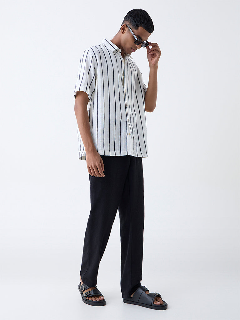 This white shirt from ETA showcases stripe patterns that elevates its casual appeal. Tailored from a cotton-rich fabric, it is cut in a relaxed-fit silhouette for a laid-back design. Finished with a spread collar, short sleeves and a button-up front, it offers an easy-going essential for everyday wear.