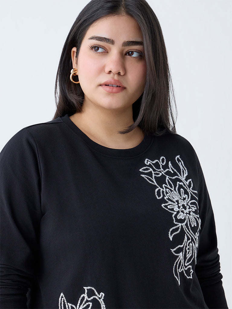 Add a touch of sophistication to your off-duty edit with this black sweatshirt from Gia. Crafted from a cotton-rich fabric, it’s adorned with exquisite floral embroidery and finished with a round neck and full sleeves for a relaxed silhouette.