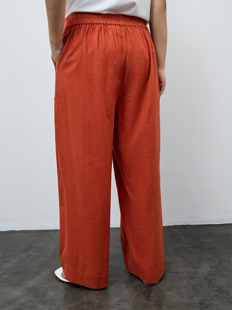 A Gia essential that fits right in, these rust pants are shaped with a high-rise waist, fitted with an elasticated waistband to allow relaxed movement. Crafted from a cotton-rich fabric that feels light against the skin. Finished with side pockets, they work comfortably with both structured tops and softer layers for an effortlessly balanced look.