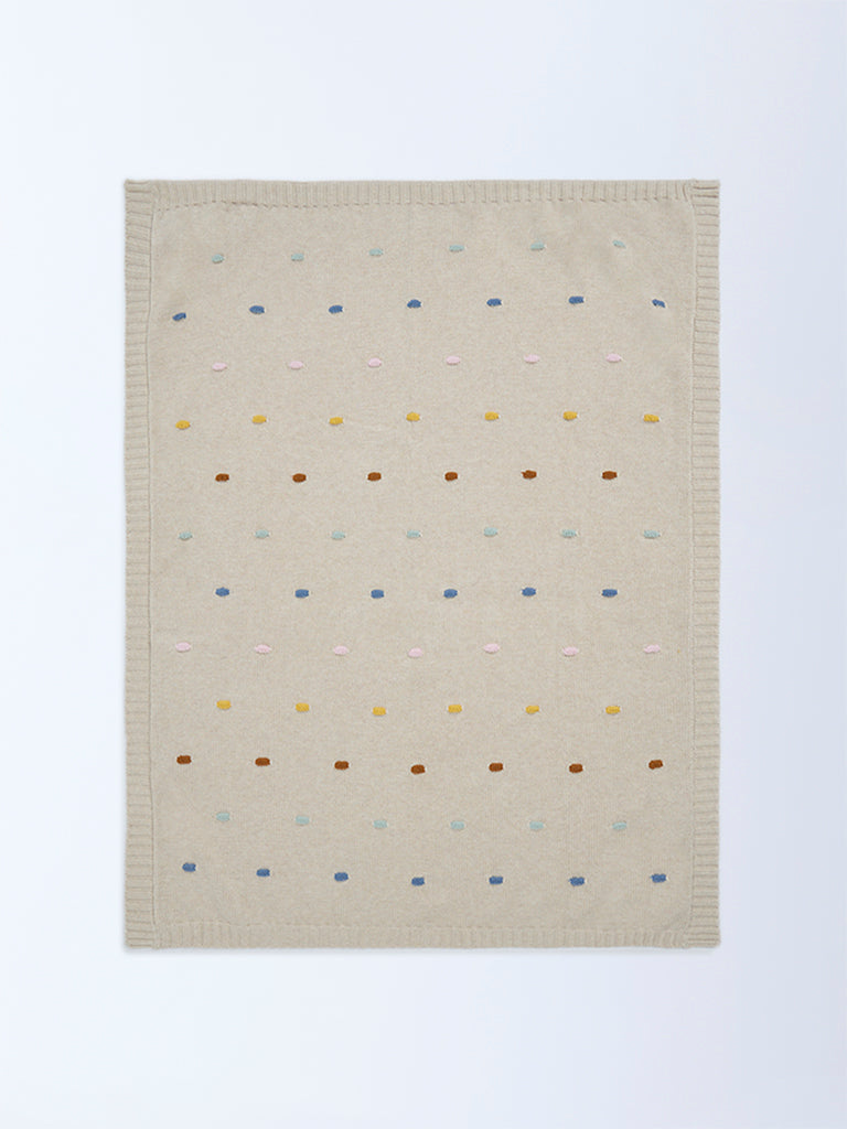 Nestling your little one in warmth and comfort, this neutral blanket by HOP Baby is made for cosy cuddles and peaceful rest. Designed in a soft beige tone with delicate multicolour dot detailing, it adds a subtle playful touch while keeping things calm and soothing. Woven from a breathable knit fabric, it feels soft against delicate skin and provides comforting warmth without feeling heavy.