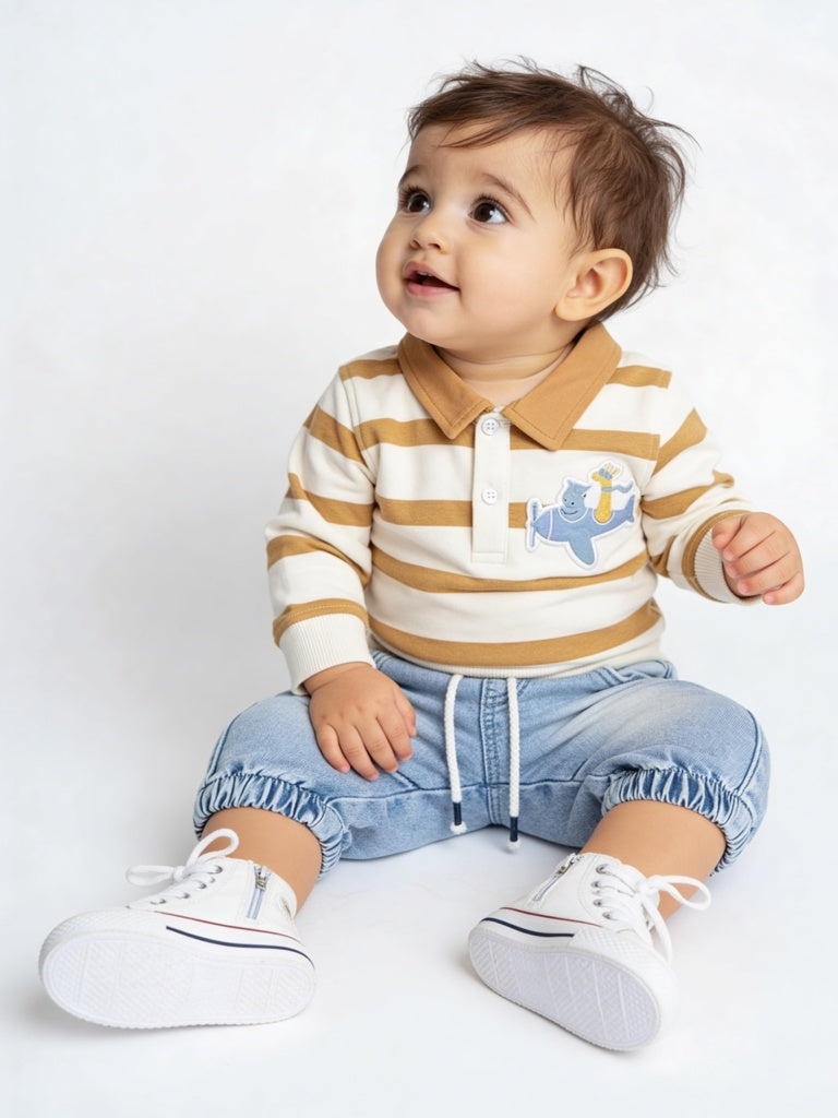 Revamp your child's fashion quotient with these light blue denim joggers from HOP Baby, designed with a soft faded finish for a relaxed look. Crafted from a comfortable cotton-blend fabric, they feature an elasticated waistband with adjustable drawcords for a flexible fit. Handy side pockets and back pockets add everyday utility.