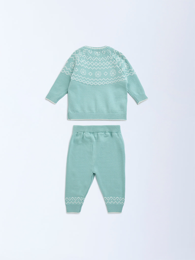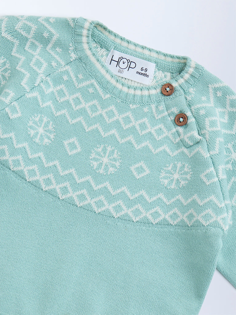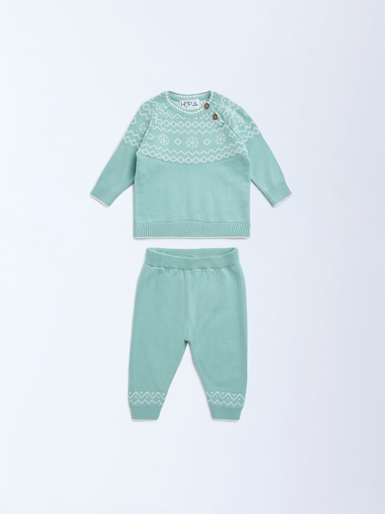 Keep your little angel cozy and stylish in this mint set from HOP Baby. The sweater is adorned with playful geometric prints and features a soft crew neck and raglan sleeves for easy movement, while the matching joggers come with an elasticated waistband and ribbed cuffs for a snug fit. Crafted from pure cotton, this set is breathable and gentle on delicate skin.