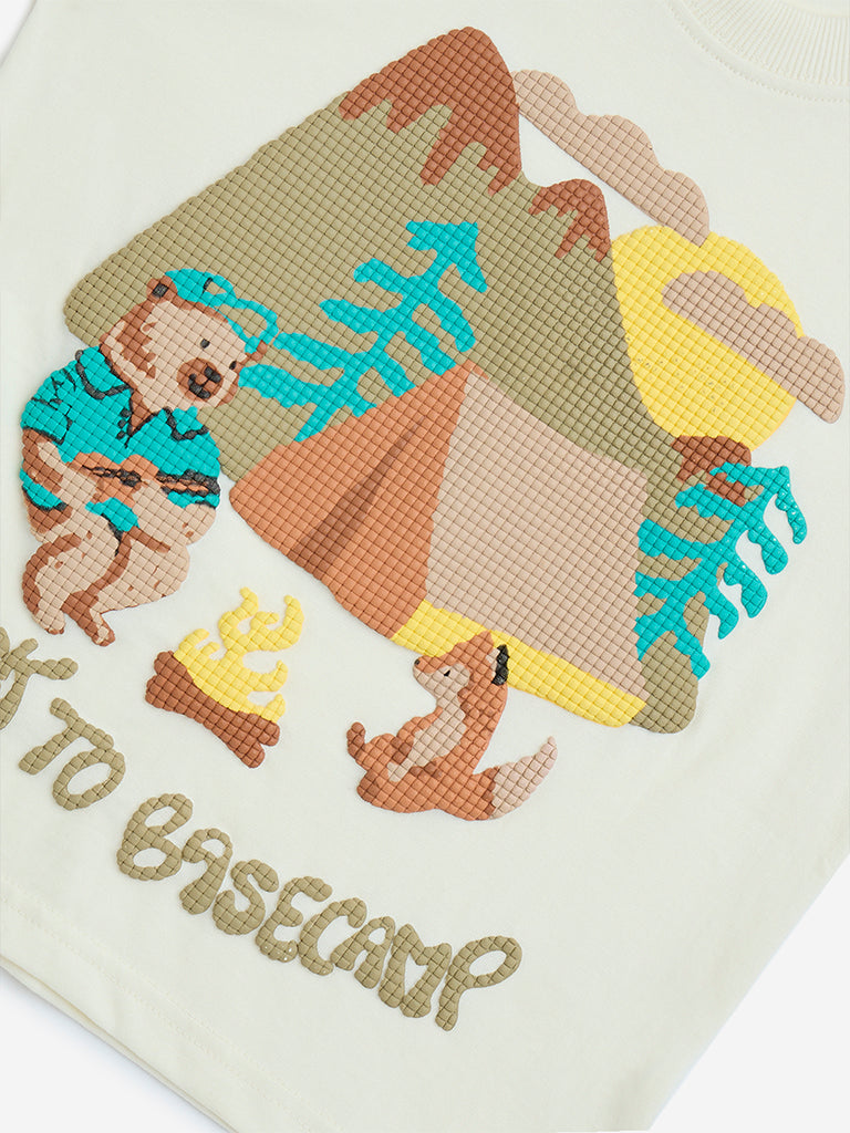 Give your child’s everyday look a cheerful update with this off-white t-shirt from HOP Kids. Made using pure cotton for all-day ease, it features vibrant multi colour prints that add a playful charm. The crew neck and short sleeves complete the design with a classic, comfortable finish.