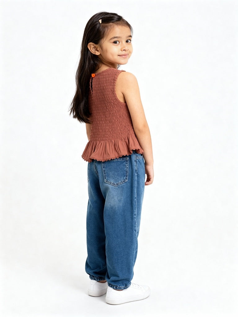 Full of texture and thoughtful details, this rust top from HOP Kids is a standout piece for dress-up moments and sunny outings. The smocked bodice offers a flattering fit, while side bows and a frilled hem bring a playful finish. Made from an ultra-lightweight fabric, it's complete with a round neck and a back button closure for easy wear.