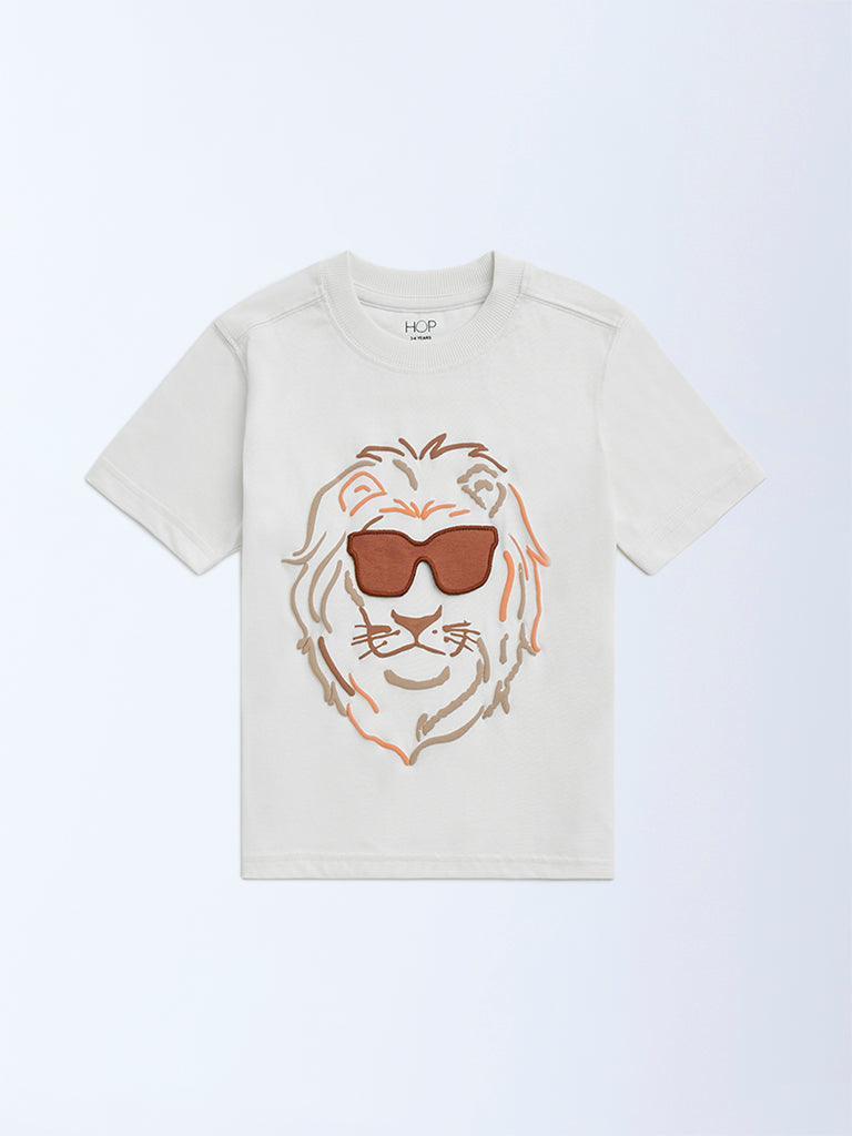 Unleash his adventurous side with this off-white t-shirt from HOP Kids, featuring a bold lion print that adds a dash of personality to every outfit. Milled from pure cotton, it keeps him comfortable from playtime to family outings, while the crew neck and short sleeves complete the look.
