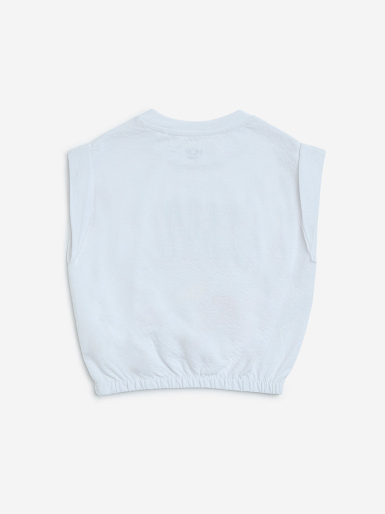 This white t-shirt from HOP Kids adds a cheerful twist to everyday style. Made from pure cotton, it features playful fruit appliqué detailing with a fun text print. The crew neck and dolman sleeves offer a relaxed fit, while the elasticated detailing at the bottom adds a cute, gathered finish.