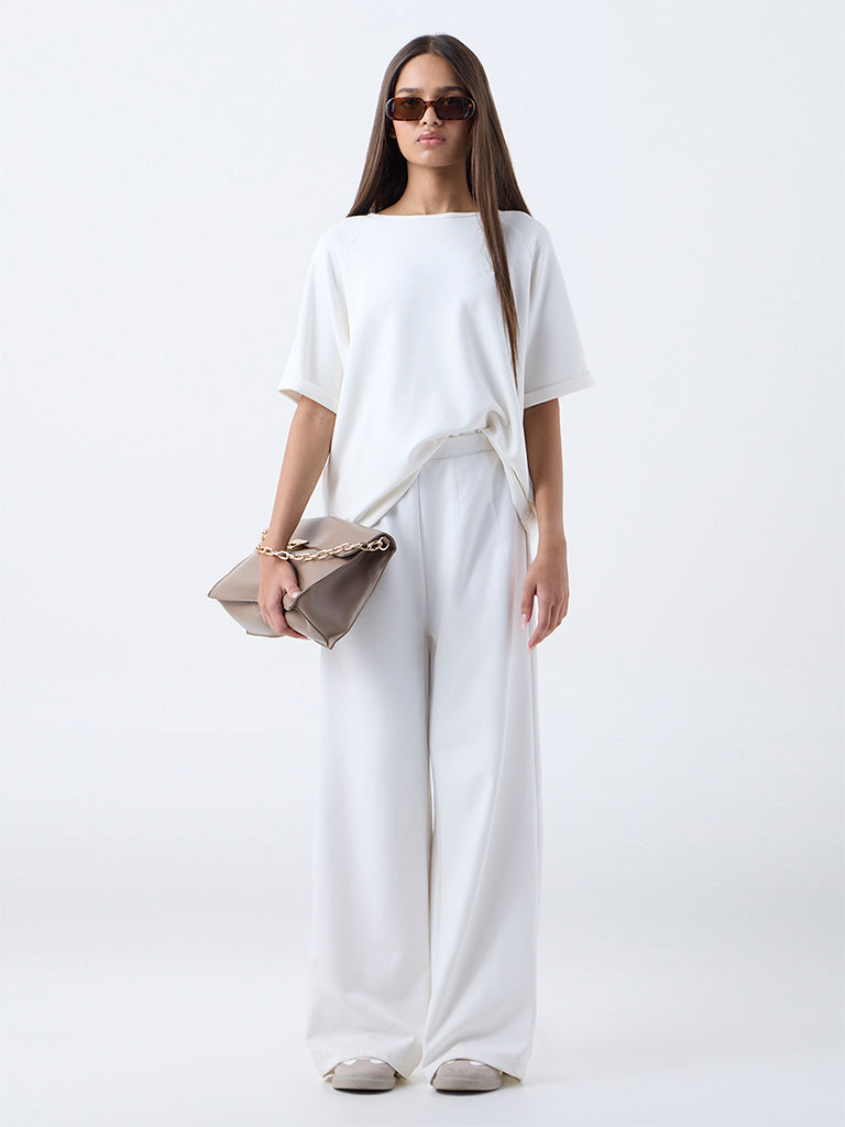 Softly structured and effortlessly chic, this off-white t-shirt from LOV is crafted from stretchable fabric that moves with you. The boat neck and raglan sleeves create a feminine shape that feels both easy and refined.