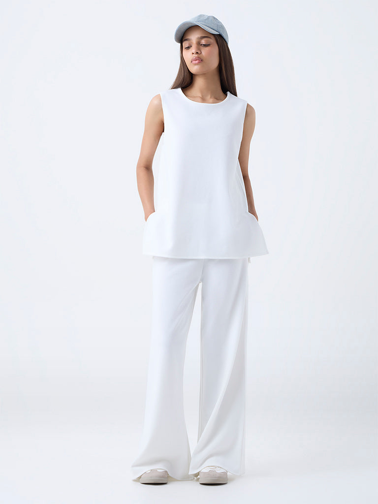 Minimal and polished, this white sleeveless top from LOV is an effortless choice for day-to-day wear. The round neckline and subtle slit at the hem create a sleek silhouette that pairs beautifully with both tailored trousers and relaxed denim.