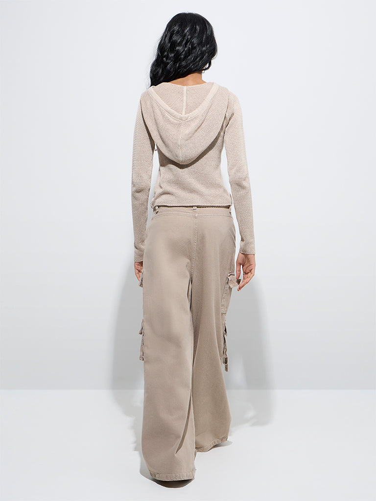 These beige jeans from Nuon are fashioned in a cargo silhouette from a cotton-rich fabric for durability and comfort. Detailed with a buttoned waist, belt loops, and a zip fly, they also feature multiple pockets for added utility.