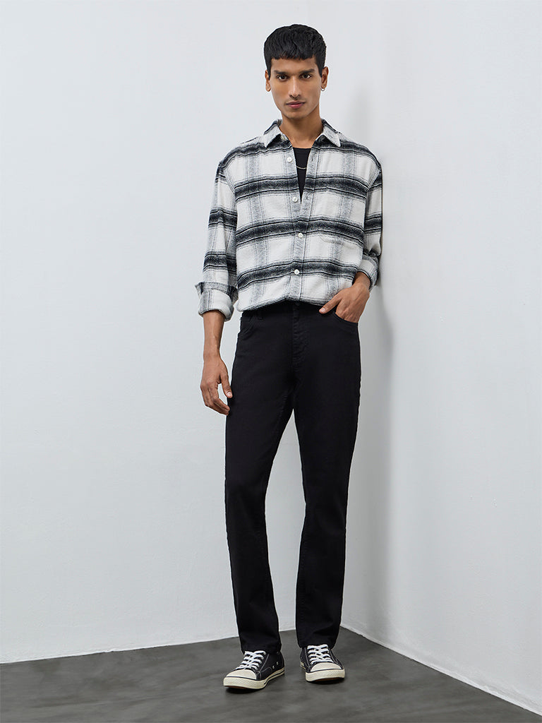 Designed for a sharp look, these black Hendrix jeans from Nuon deliver comfort with edge. Made from flexible denim, they offer all-day ease in a slim-fit silhouette. Styled with a button-zip fly, belt loops, and practical pockets, the high-retention stretch fabric moves with you while maintaining structure.