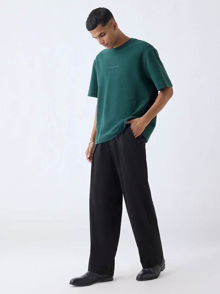 Nuon redefines everyday ease with these black trousers, cut in a relaxed silhouette that transitions effortlessly from work to weekend. The smooth waistband features a button closure for a tailored yet laid-back fit, while the zipper fly and belt loops keep the look grounded. Finished with multiple pockets, they strike a considered balance between structure and comfort.
