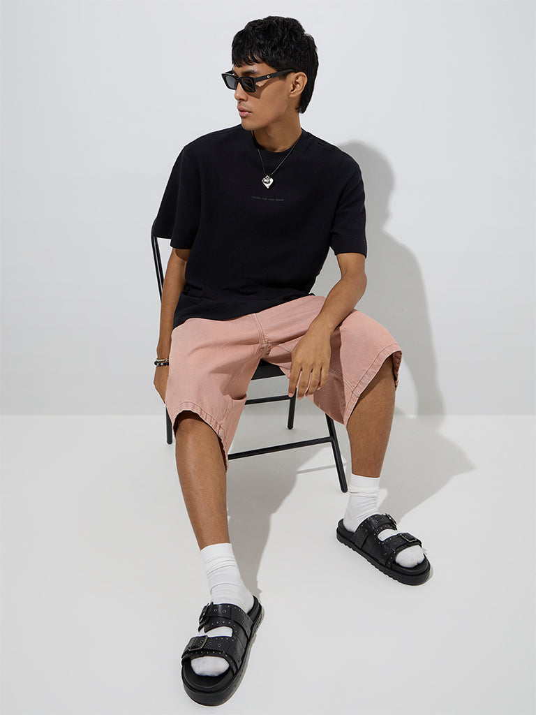 This black t-shirt from Nuon brings an understated vibe to your casual wardrobe with dainty text detailing across the front. Created from pure cotton in a relaxed frame, it features a crew neck and half sleeves, making it an easy essential for everyday comfort and style.
