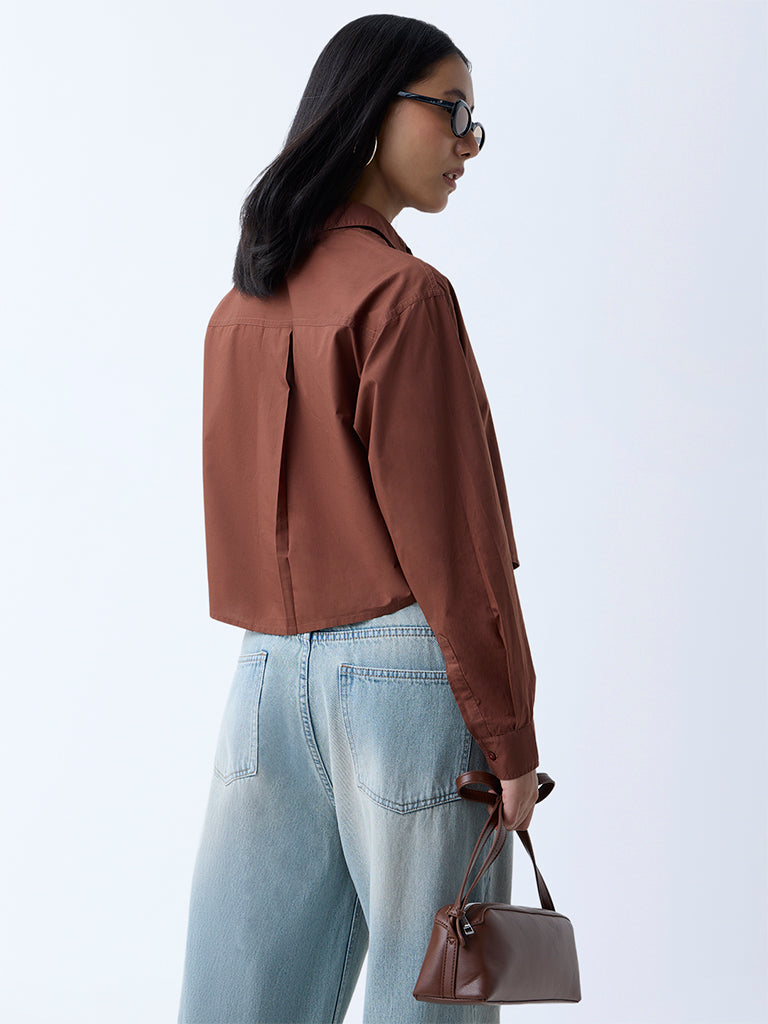 This brown shirt from Nuon is tailored in a cropped silhouette for a modern edge. Spun from a breathable fabric, it features a classic collar, full sleeves, and a button-down front that lends structure without compromising comfort.