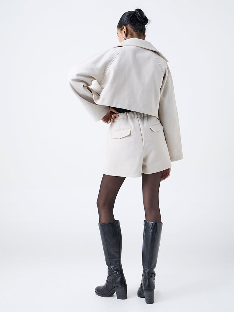 Easy elegance defines these off-white shorts from Nuon. Designed with a high-rise waist, they feature structured belt loops and subtle front pleats for a neat, refined look. The side pockets allows everyday function while the smooth fabric construction ensures a comfortable fit that pairs effortlessly with both casual and dressy separates.