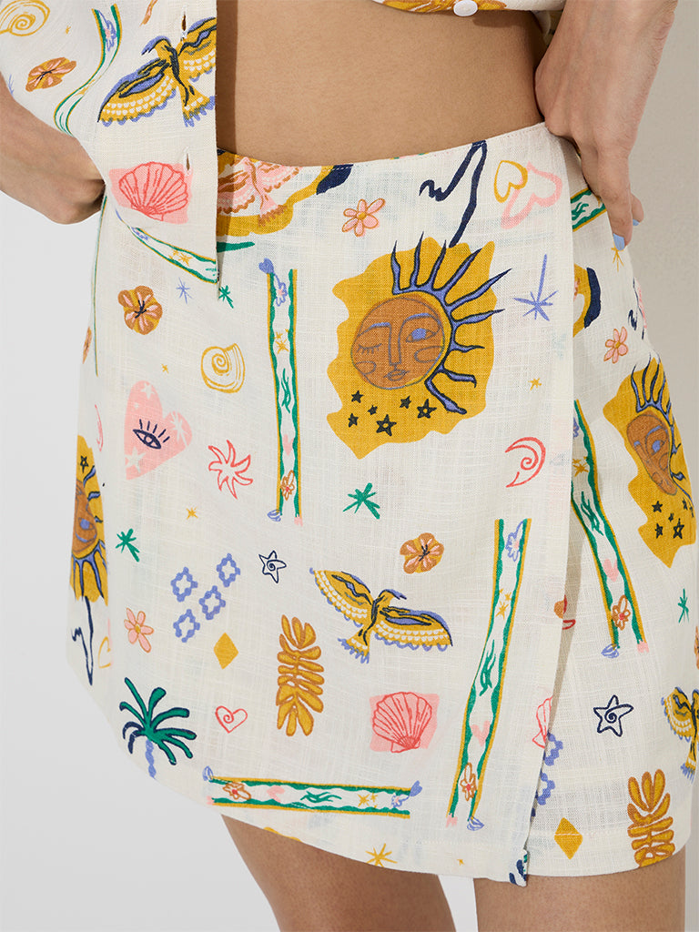Nuon’s off-white skorts brings a touch of nature to your wardrobe with its delicate, nature-inspired patterns. Crafted from a luxurious linen-blend fabric for all-day comfort, it features a stylish wrap-over front and an elasticated waistband for a perfect, customized fit.