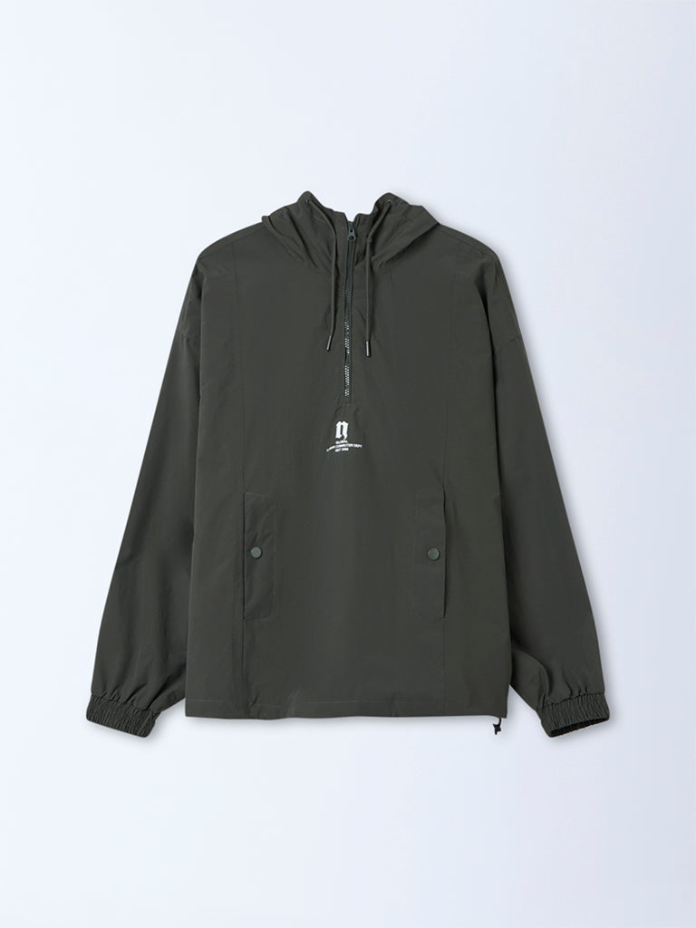 This olive hoodie by Nuon is styled with adjustable drawstrings and a modern quarter-zip closure for a sleek, dapper look. Designed with full sleeves and a functional kangaroo pocket, it balances comfort and utility. The clean silhouette allows easy layering, making it a versatile pick for casual outings, travel days, or relaxed off-duty dressing.