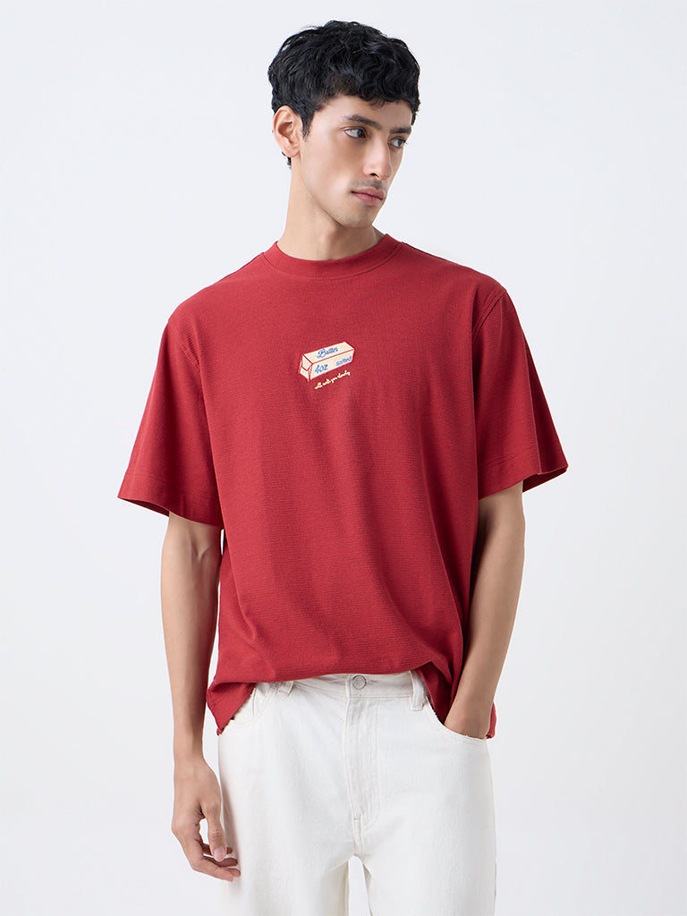 Nuon brings a playful update to everyday dressing with this red t-shirt. Made from a textured fabric in a relaxed fit, it is designed with a classic crew neck and short sleeves. Fun graphic prints at the front and back add character, making it a standout piece for casual rotations.