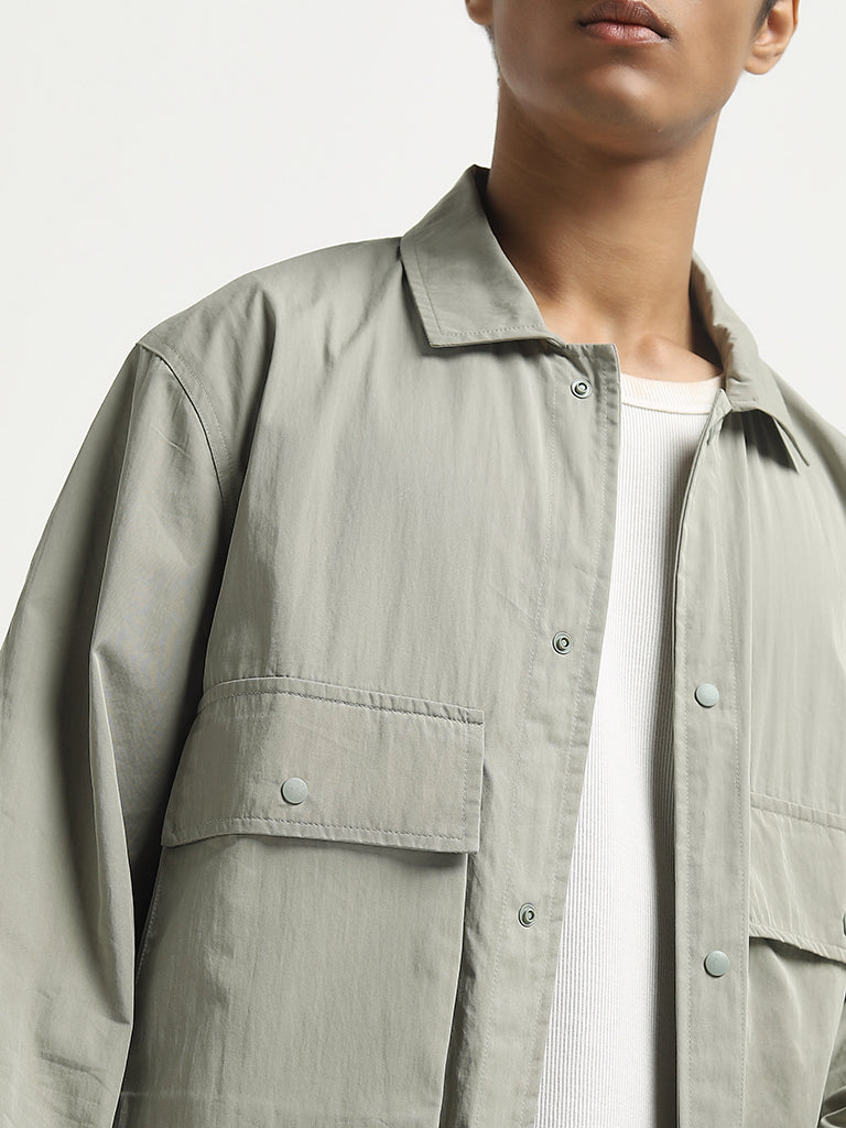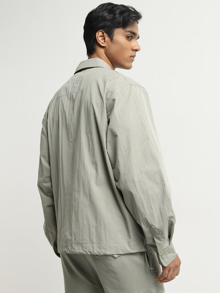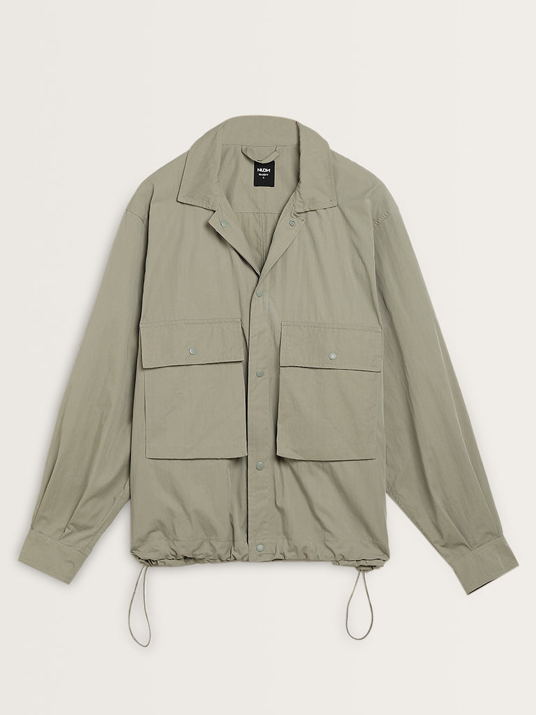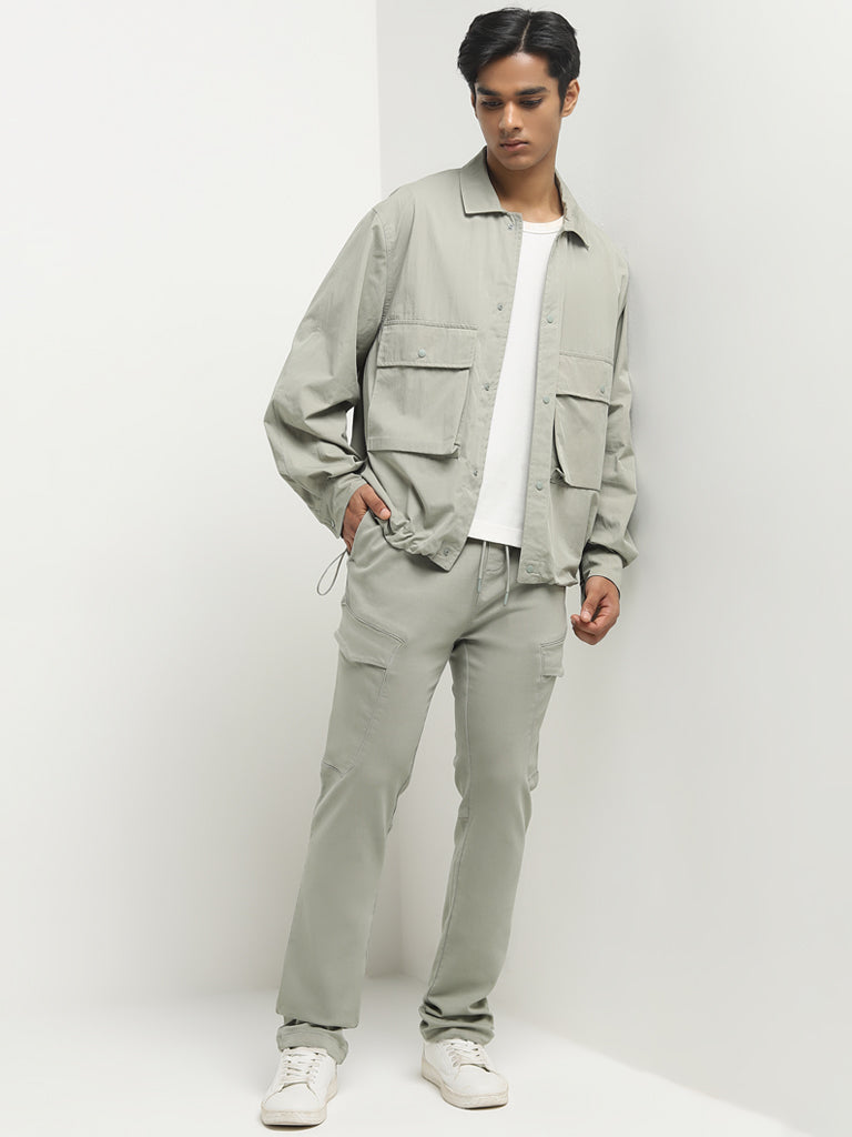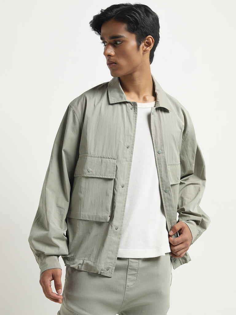 Sculpted from a cotton-rich fabric, this sage jacket from Nuon features a relaxed profile. It comes fitted with a spread collar that extends to a button placket and full sleeves. The drawstrings at the hemline and chunky pockets in the front elevate its convenience level.