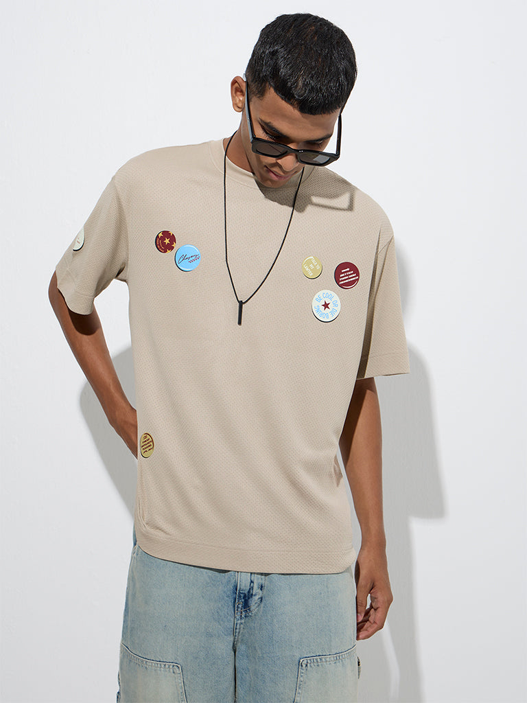 This taupe t-shirt from Nuon highlights badge motifs at the front and bold text prints at the back for a graphic edge. Woven from pure cotton for all-day comfort, it is shaped in a relaxed fit with a round neck and short sleeves, making it an easy addition to your everyday wardrobe.