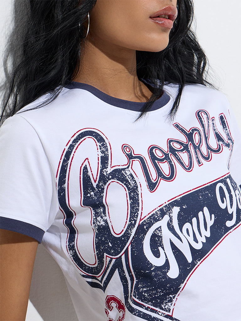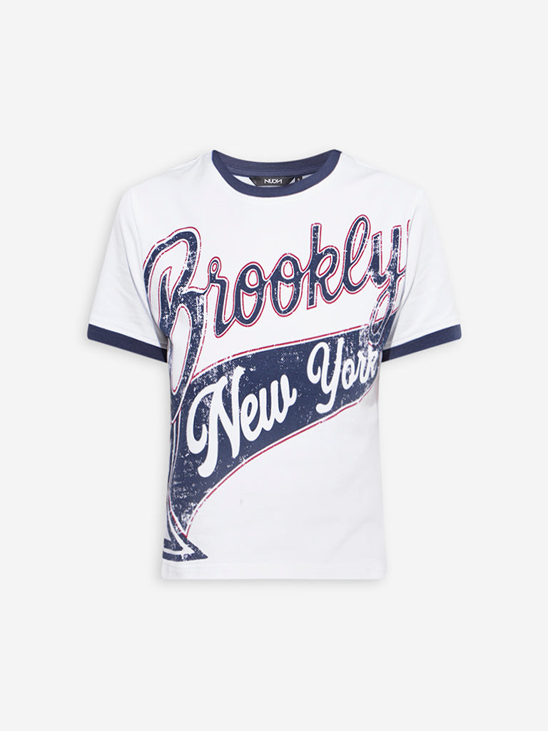 This white tee from Nuon stands out with its stylised text prints that add character to its clean silhouette. Made from a soft cotton-blend fabric, it’s designed for all-day comfort. Finished with a round neck and short sleeves, it’s an effortless pick for your off-duty looks.