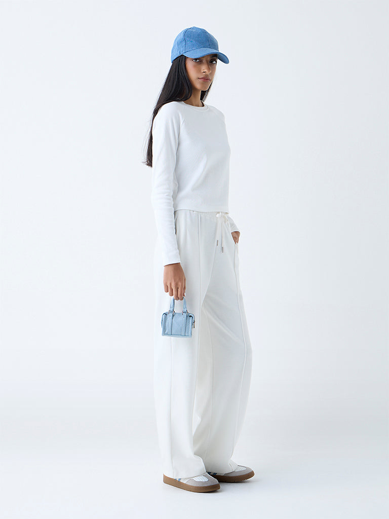 This white tee from Studiofit is made from ultra-soft, ribbed-textured fabric that moves with you. The round neck and raglan sleeves nod to classic athletic design, while the body-hugging fit makes it ideal for layering or solo wear.