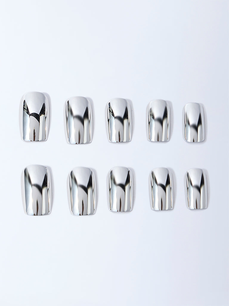 Make an impact with Studiowest’s Silver Metal Press-On Nail Set, finished in a mirrored chrome effect for high-shine intensity. The kit includes 24 reusable press-on nails, 24 glue tabs, a cuticle stick, and a nail file. Pre-shaped with a squared tip, the nails deliver a sleek, futuristic edge that applies in minutes without the need for polish. Lightweight yet durable, they sit comfortably while offering a salon-like finish. Easy to fix and remove, this set is a bold choice for evening edits, styled shoots or statement occasions.