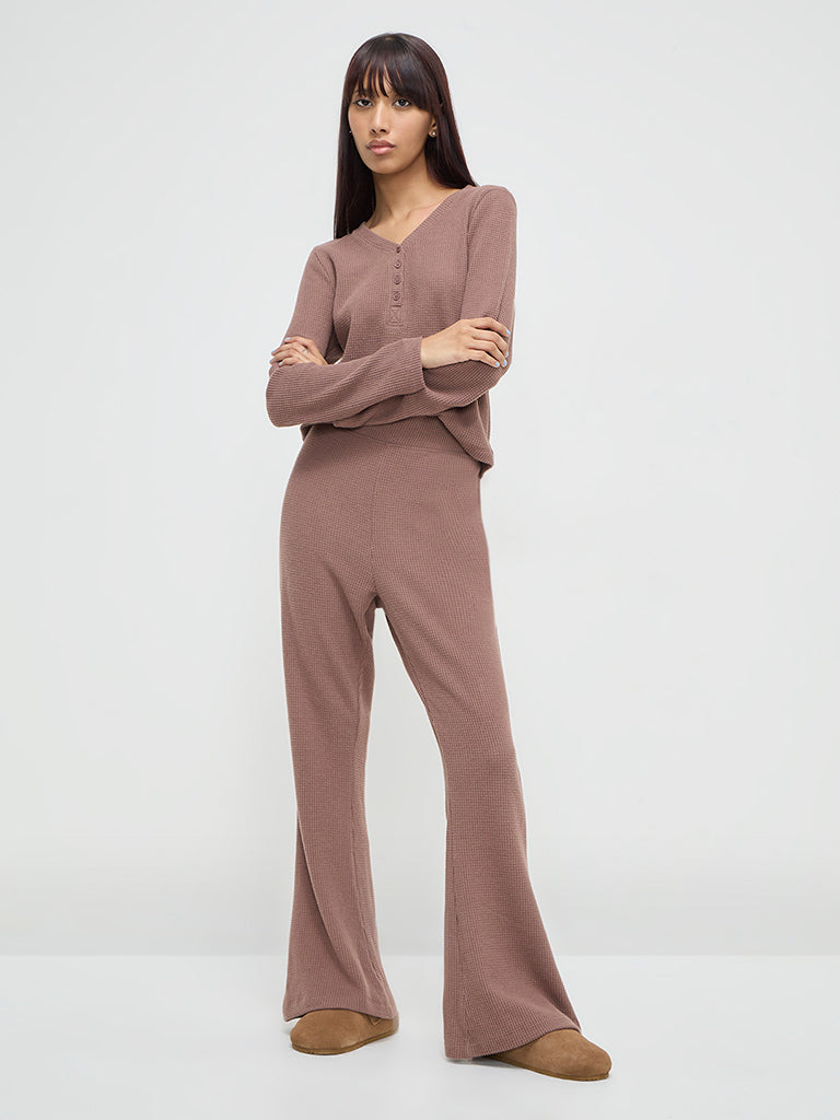 Superstar launches these brown pants in striking waffle-texture. Made with quality fabric, the high-rise bottom wear carries a smooth elastic waistband for a comfy fit.