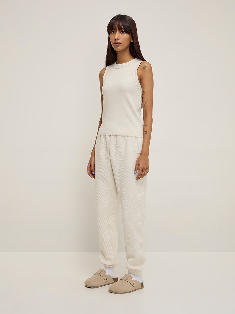 Superstar presents this off-white tank top featuring a ribbed texture. Made with soft and breathable fabric, it boasts a round neck and sleeveless cut.