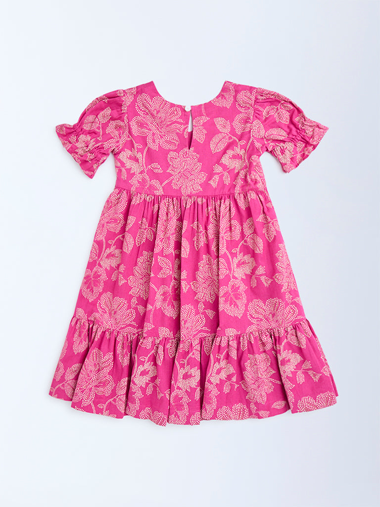 Utsa Kids Pink Bandhani Floral Cotton-Blend Tiered Dress - (2-8yrs)
