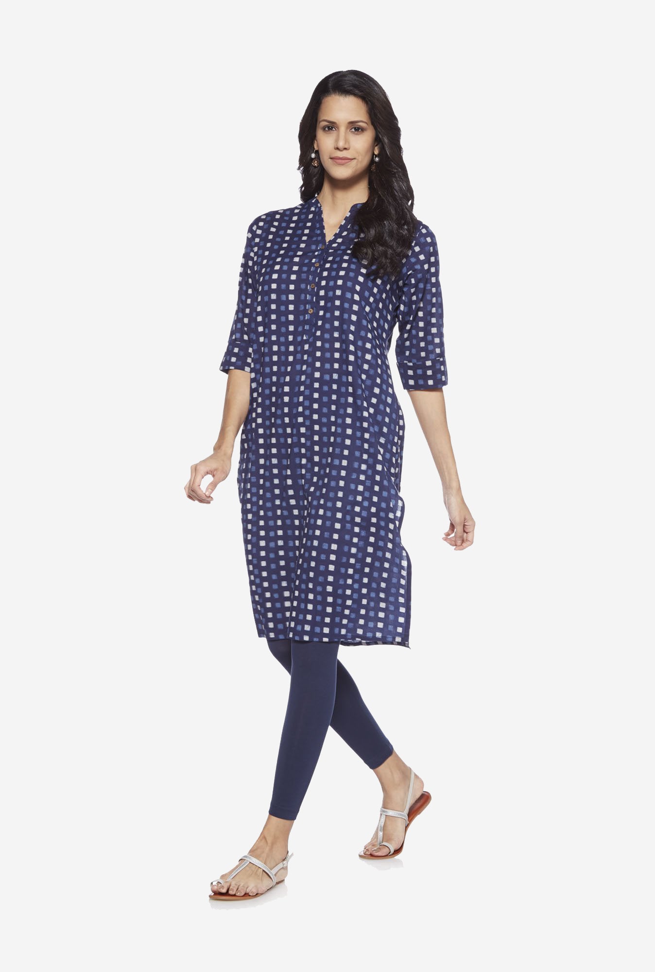 Perfect for pairing with both tunics and kurtas are these versatile navy leggings from Utsa. Rendered in a cropped pattern from an ultra soft and breathable stretch cotton fabric, these comfortable pants come finished with an elasticated waistline.