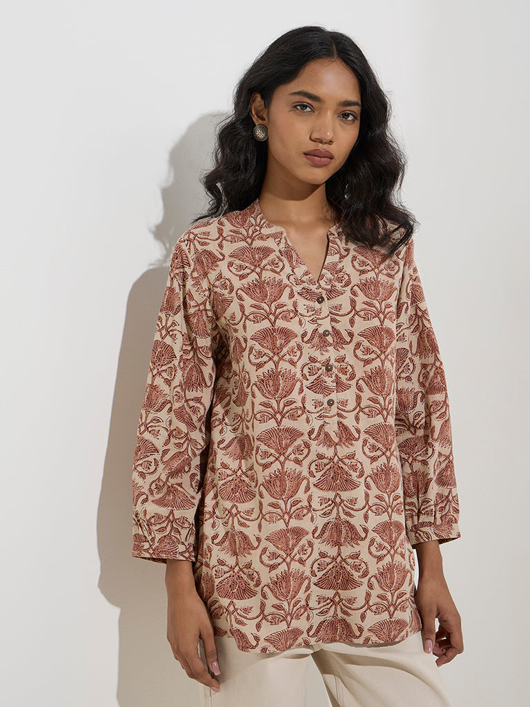 Utsa Rust Botanical-Inspired Straight Cotton Tunic