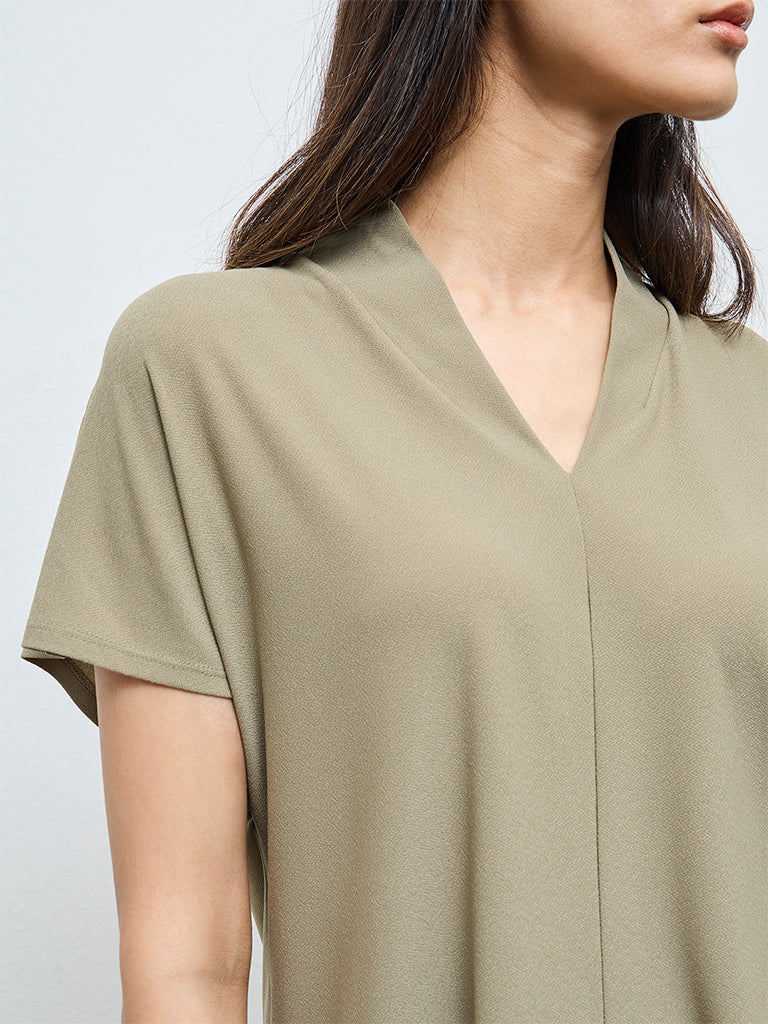 Wardrobe presents effortless on-the-go dressing with this olive top. The soft, breathable fabric built provides sumptuous comfort for long wear hours. It is framed with a V-neck and dolman sleeves, making it an easy choice for streamlined everyday styling.