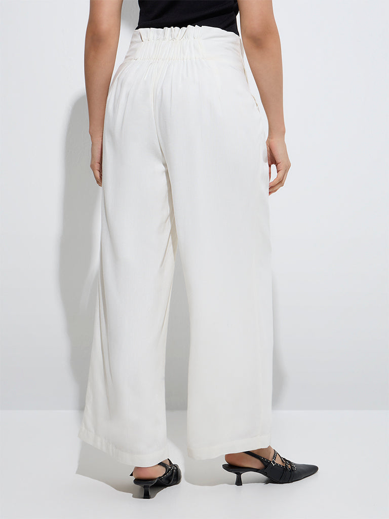 These white trousers from Wardrobe bring a refined touch to your formal style. Created from a breathable fabric, they’re designed with a ruffled waistband for added flair. Finished with a zipper fly and functional side pockets, they balance comfort and polish effortlessly.