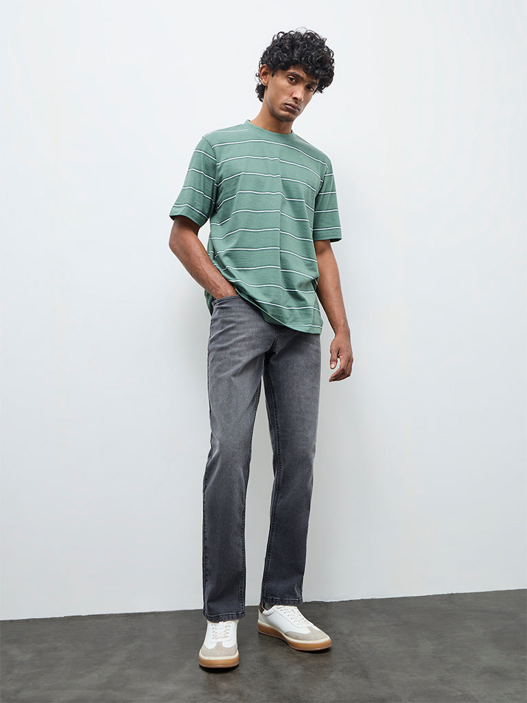 Easy movement sits at the core of these charcoal jeans from WES Casuals. The relaxed silhouette is constructed from a cotton-blend fabric that provides an all-day breathable feel. Framed in a mid-rise, it is fitted with a buttoned waist, belt loops, zipper placket and multiple pockets.