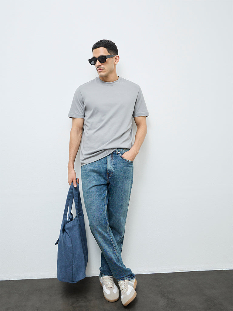 Clean and minimal, this grey t-shirt from WES Casuals is tailored for a sharper casual look. Designed in a slim-fit silhouette, it features a classic crew neckline and short sleeves. Crafted from pure organic cotton, it ensures soft, breathable comfort throughout the day.