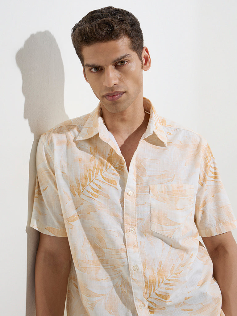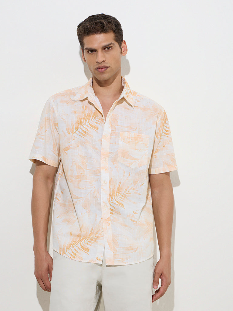 Decked with botanical-inspired prints, this orange shirt from WES Casuals is spun from pure cotton in a relaxed handle for easy comfort. Finished with a classic collar, half sleeves, button placket, and chest pocket, it’s a go-to for warm-weather days.