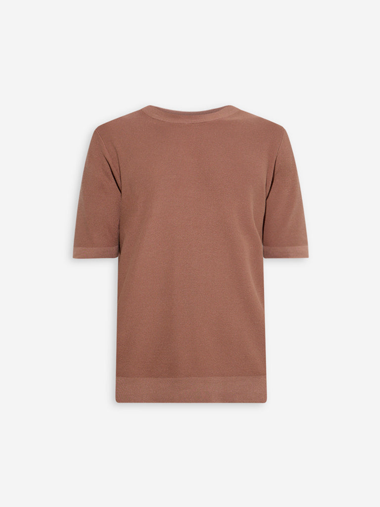 This brown t-shirt from WES Formals is framed with a round neck and half sleeves for a breezy finish. It is spun from premium quality fabric with a slim-fit frame, making it suitable for everyday wear.